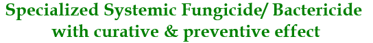 For the control of fungal diseases which attack plant neck and vascular system like (Verticillium, Rhizoctonia, Fusarium, Pythium, Botrytis, Phtophthora,…etc) on vegetables, nurseries, fruit trees, citrus trees and flowers, as well as bacteria (Pseudomonas lupini, Erwinia carotovora…etc).